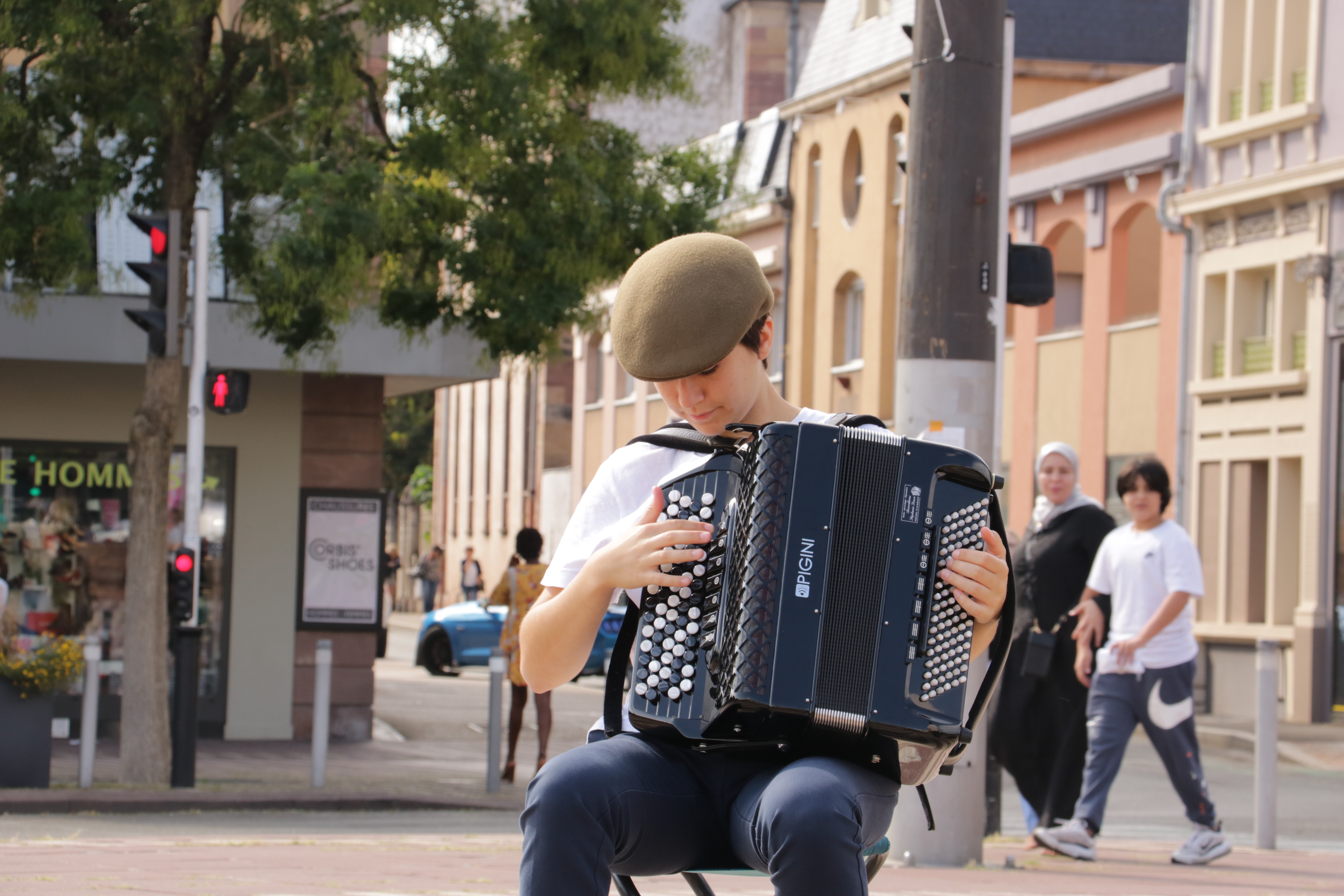 En juillet 2022, la compagnie m’a confié la création de son logo, une étape essentielle avant de prendre la route pour leur première performance. Leur spectacle, Les Musiciens de Meubret, est une adaptation musicale du conte des frères Grimm. Ce spectacle de rue, destiné à un large public, m’a offert l’opportunité de capturer leur passage à Belfort à travers la photographie.